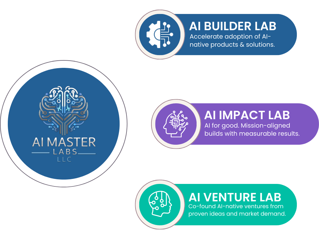 AI Master Labs is a Builders-in-Residence platform for ground-up innovation in the age of AI. Our entrepreneurial builders embed with teams to design, prototype, and launch systems and ventures that wouldn’t exist otherwise. Guided by proven playbooks and a zero-to-one mindset, we deliver outcomes with urgency, clarity, and lasting impact.
